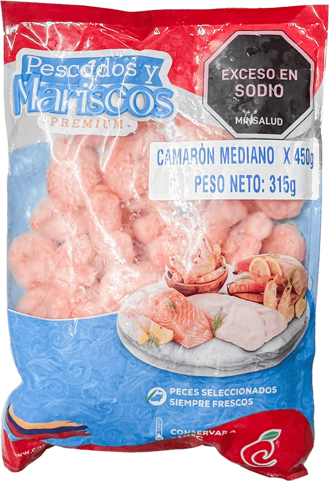 Camaron C 450 gr. Mediano Cultivo Los camarones medianos de cultivo de 450g destacan por su sabor fresco y versatilidad. Perfectos para preparar ceviches, pastas o