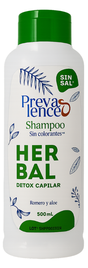 Shampoo Prevalence 500 ml. Herbal El Shampoo Prevalence de 500ml Herbal limpia y revitaliza tu cabello con extractos naturales. Ideal para quienes buscan frescura y